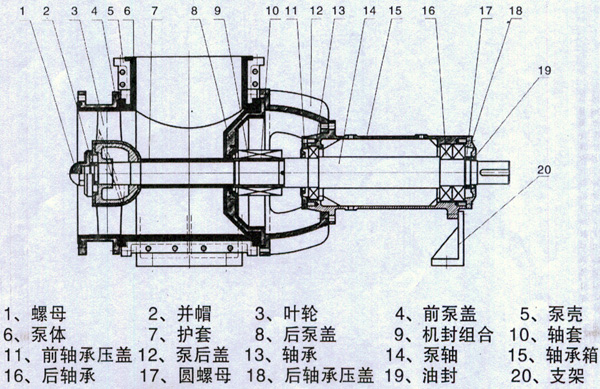 2、本泵采用后開門拉出式結構泵,拆卸維修方便,檢修時可不拆卸聯接管路,變可將泵的軸子取出。