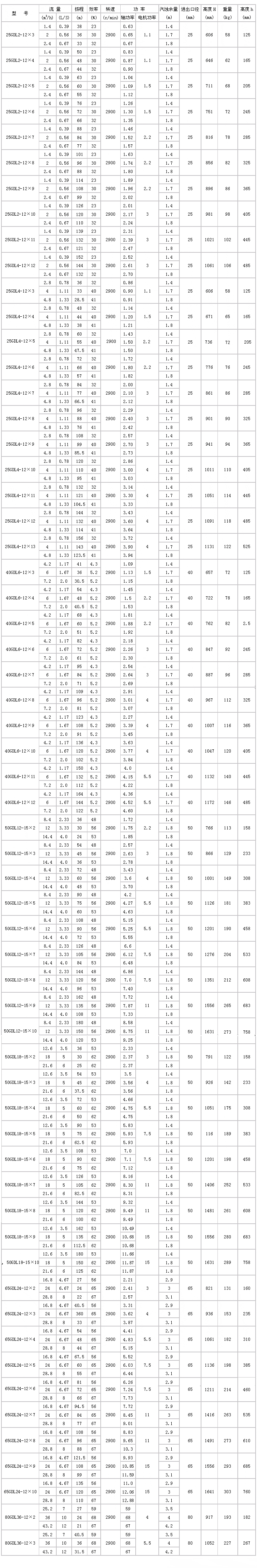 四、GDL型立式多級管道離心泵技術參數: